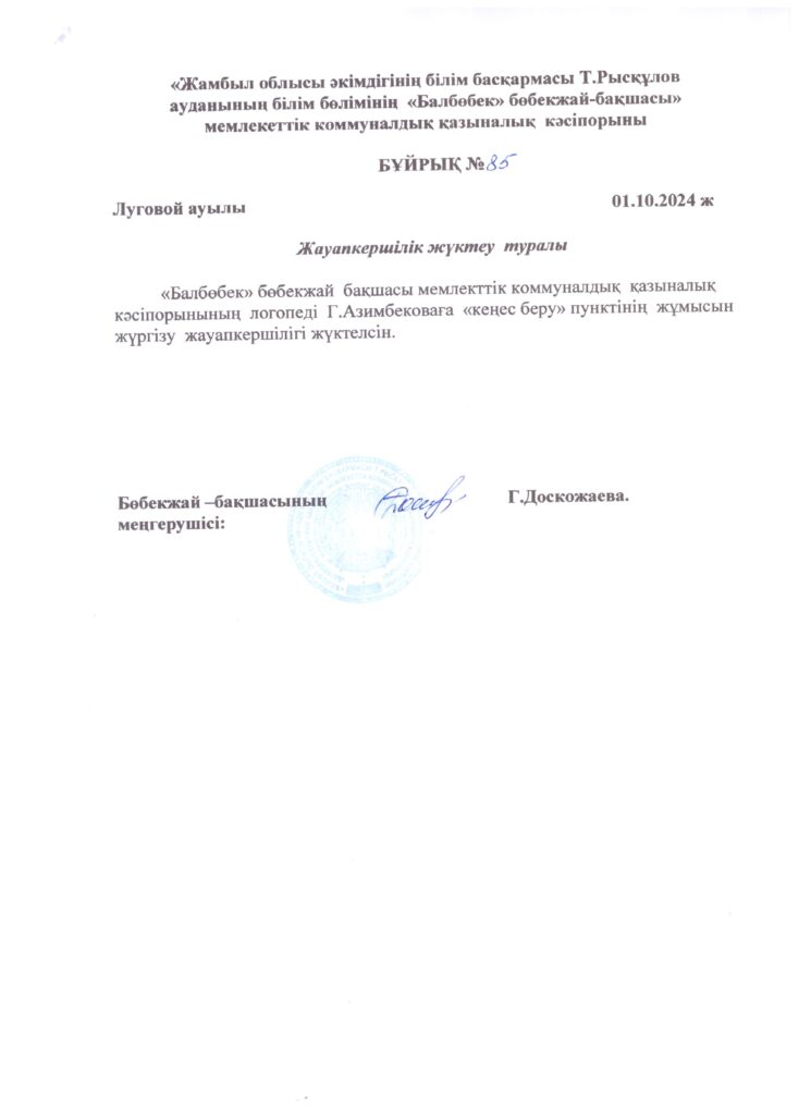 Т.Рысқұлов әкімдігінің білім бөлімінің «Балбөбек» бала бақшасы МКҚК